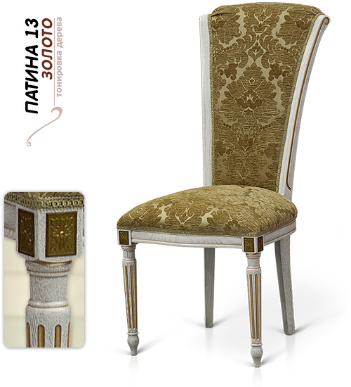 Особое впечатление производит нарядная текстильная обивка стула. Она – высококачественная, практичная и красивая. Стул изготовлен из массива дуба. Он – прочный, устойчивый и надежный.